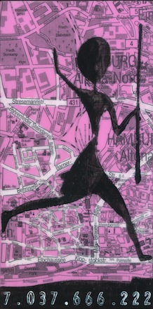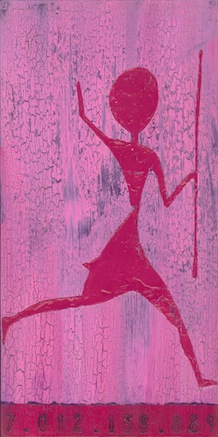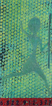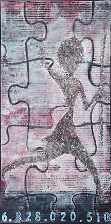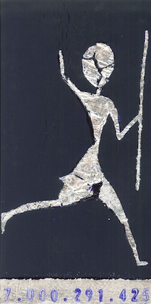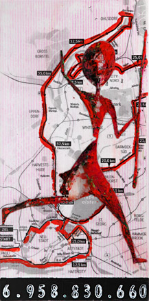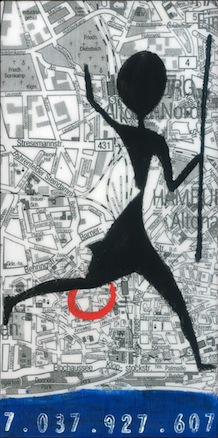 No. 788 Bevölkerungszahl vom:29.04.2012Marathon Hamburg 2012 Mischtechnik auf Holzrahmen, 2012 Acryl 40x20x6 cm (HxBxT)
