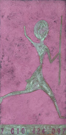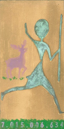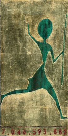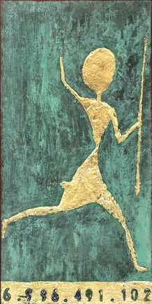 No. 859 Bevölkerungszahl vom:04.01.2013 Mischtechnik auf Holzkasten, 2013 Acryl und Kupfer 40x20x6 (HxBxT) Diesen Läufer anfragen