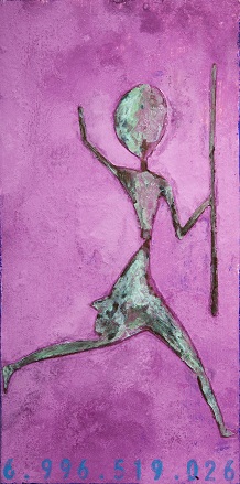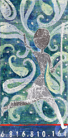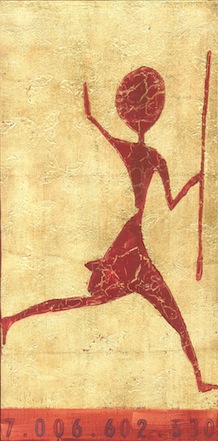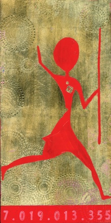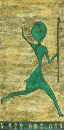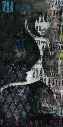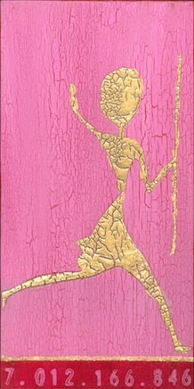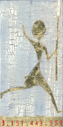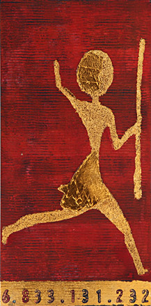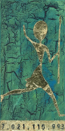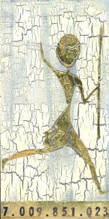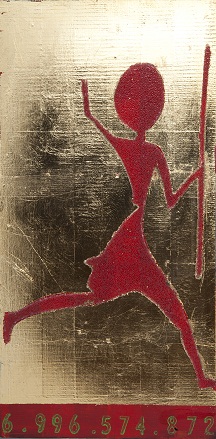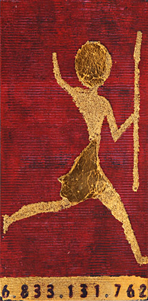 No. 849 Bevölkerungszahl vom:20.03.2013 Mischtechnik auf Holzrahmen Acryl und Blattmetall 40x20x6 Diesen Läufer anfragen