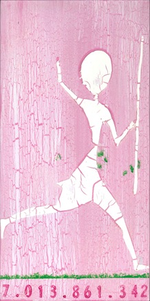 No. 835 Bevölkerungszahl vom:01.02.2013 Mischtechnik auf Holzkasten, 2013 Acryl 40x20x6 Diesen Läufer anfragen