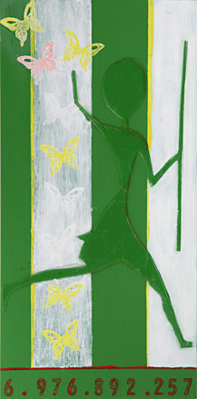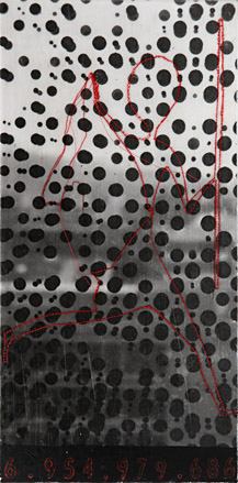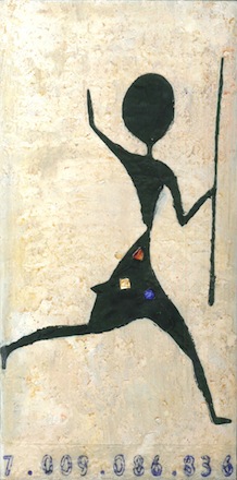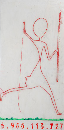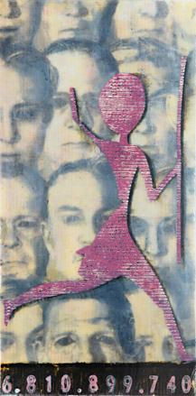 No. 800 Bevölkerungszahl vom:01.10.2012 Mischtechnik auf Holzrahmen, 2012 Acryl 40x20x6 Diesen Läufer anfragen