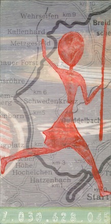 No. 789 Bevölkerungszahl vom:20.04.2012 Mischtechnik auf Holzkasten, 2012 Acryl, Filz 40x20x6 Diesen Läufer anfragen
