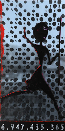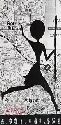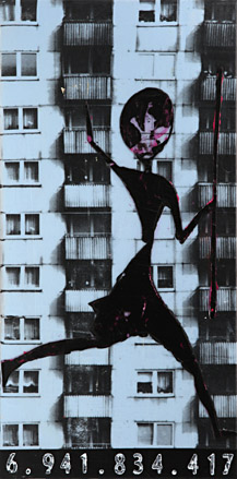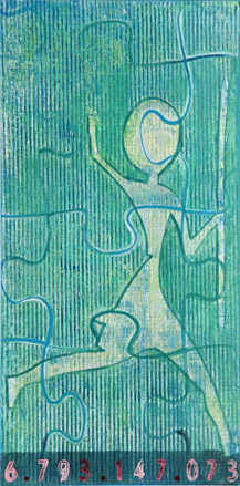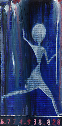 No. 881 Bevölkerungszahl vom:15.06.20136 Uhr 1.Tag Altonale Kunstmarkt Mischtechnik auf Holzkasten, 2013 Acryl 40x20x6 (HxBxT) Diesen Läufer anfragen