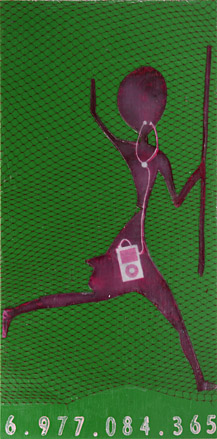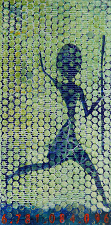 No. 810 Bevölkerungszahl vom:06.06.2012 Mischtechnik auf Holzkasten, 2012 Acryl, Garn 40x20x6 Diesen Läufer anfragen