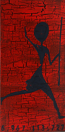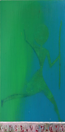 No. 879 Bevölkerungszahl vom:17.06.2013Läufer zur Tide Sendung Was Kunst du? Mischtechnik auf Holzkasten, 2013 Acryl 40x20x6 (HxBxT)