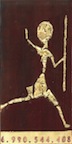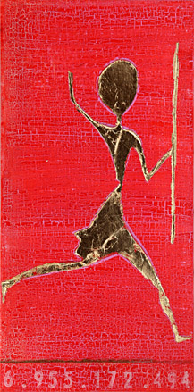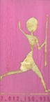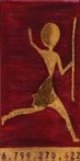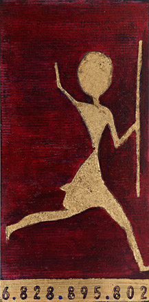 No. 827 Bevölkerungszahl vom:11.10.2013 Mischtechnik auf Holzkasten, 2012 Acryl, Blattmetall 40x20x6 Diesen Läufer anfragen