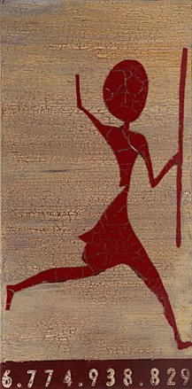 No. 809 Bevölkerungszahl vom:03.08.2102 Mischtechnik auf Holzkasten, 2012 Acryl 40x20x6 Diesen Läufer anfragen